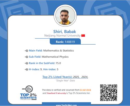 近日,斯坦福大学(Stanford University)和国际权威学术出版社爱思唯尔(Elsevier)共同发布2025年全球前2%顶尖科学家榜单(World's Top 2% Scientists)。数学与大数据学院Shiri Babak博士入选该榜单。