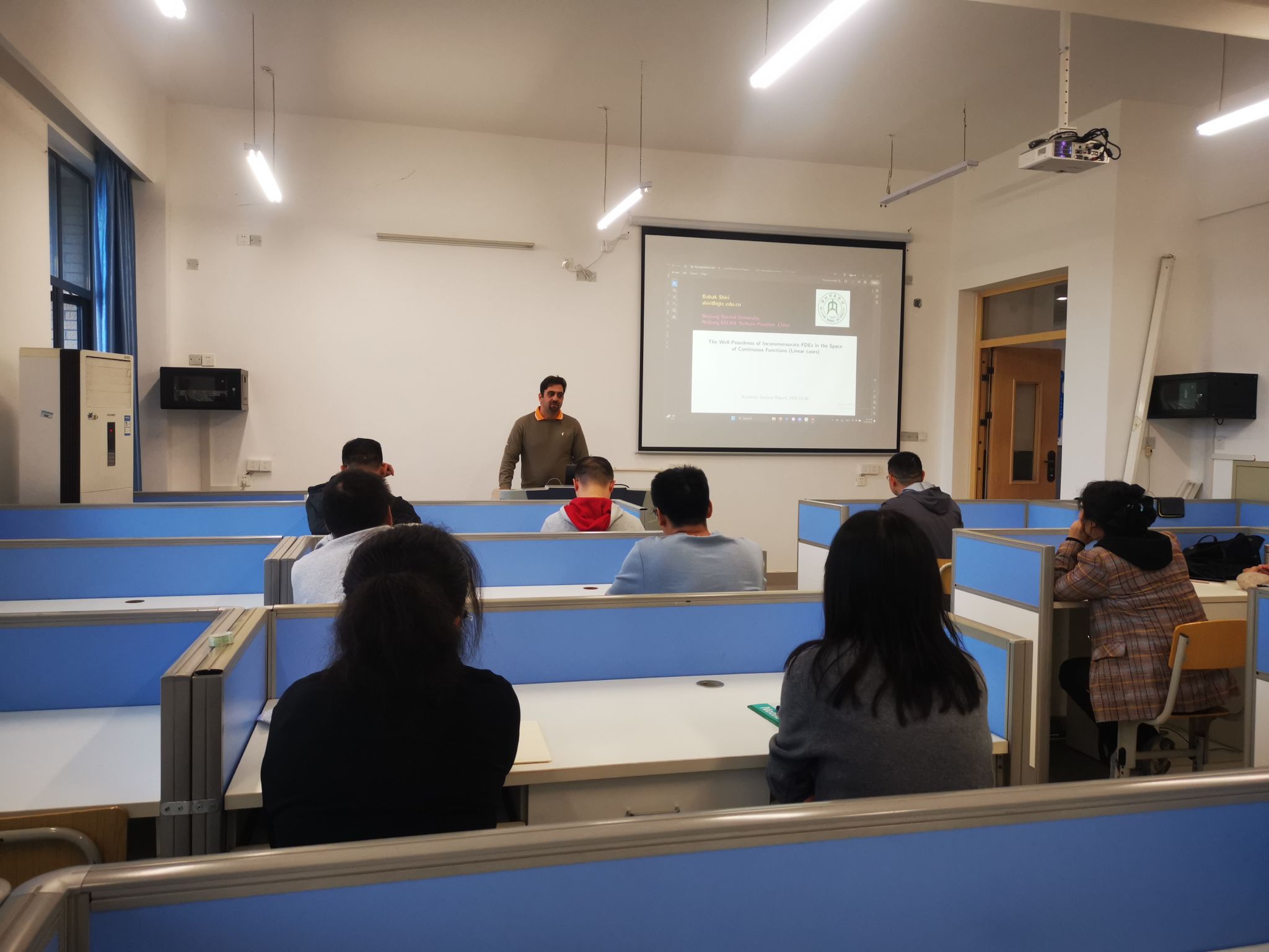 Shiri Babak在汇报中重点阐述了非一致阶线性微分方程组的适定性:首先介绍了向量分数阶微积分的定义与性质,然后给出了非一致阶连续系统的精确解及其收敛条件,最后将齐次非一致阶连续系统推广到了非齐次非一致阶连续系统。随后,实验室成员展开了热烈讨论。